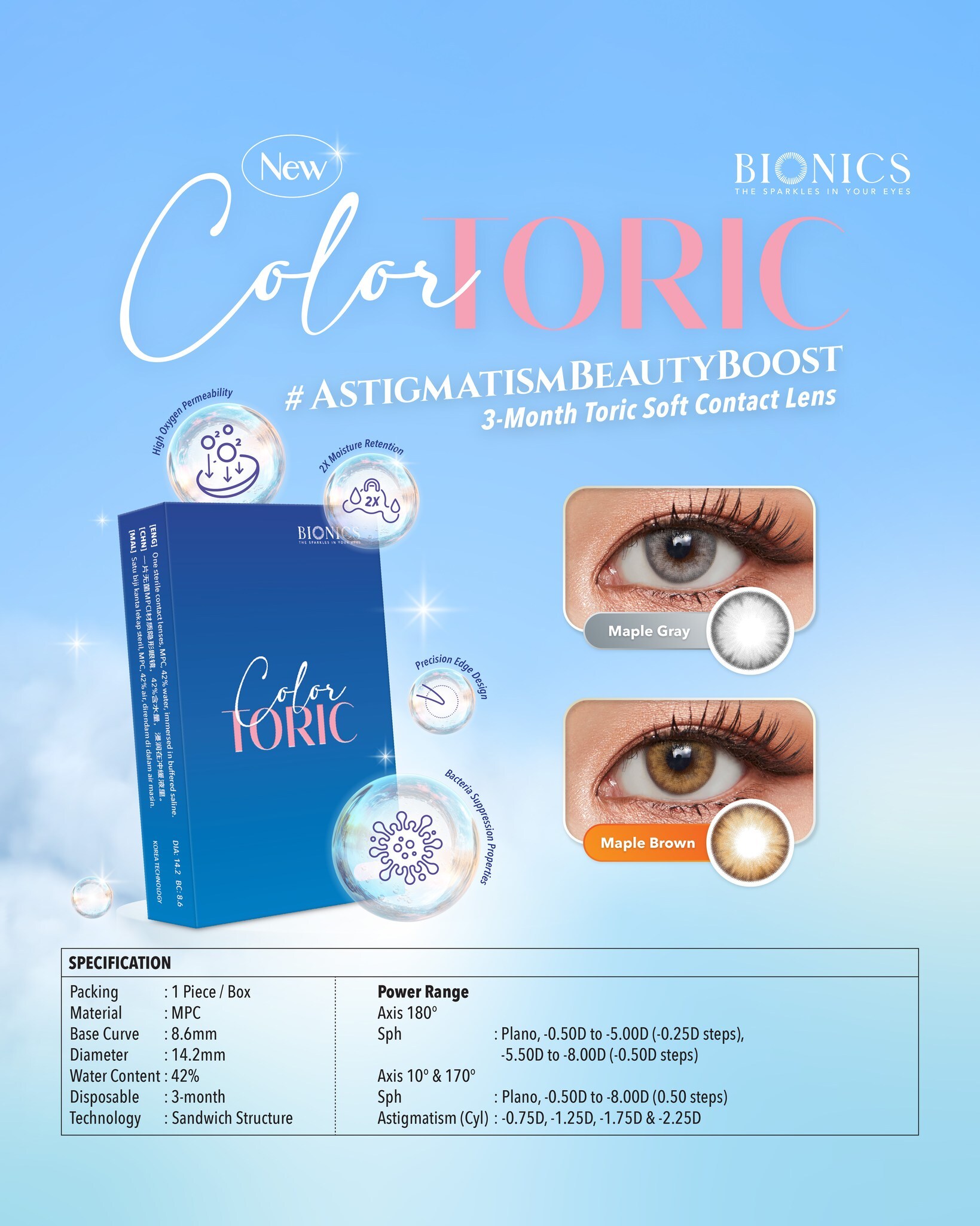 Power: pl, -0.50 to -500 ( -0.25 step) -550 to -800 (-0.50 step)